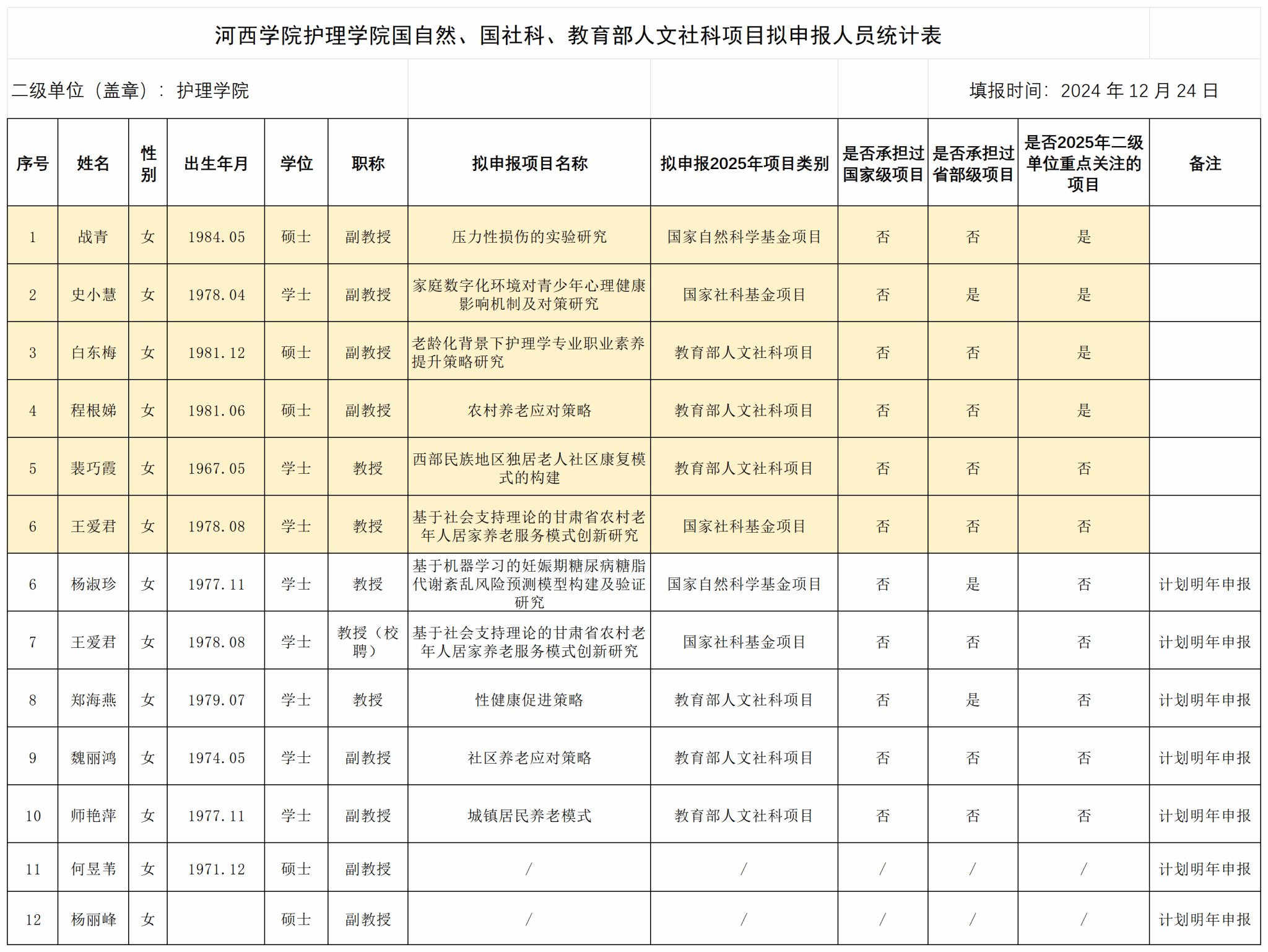 williamhill英国威廉希尔国自然、国社科、教育部人文社科项目拟申报人员统计表