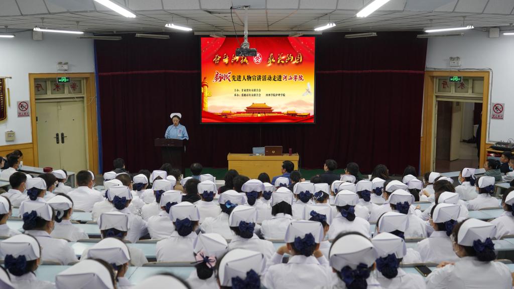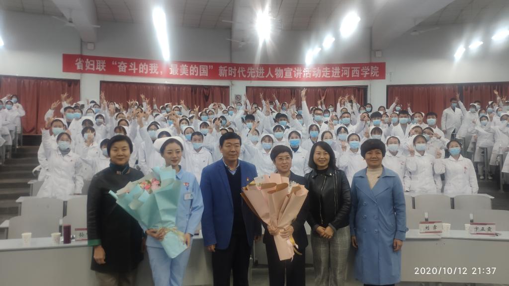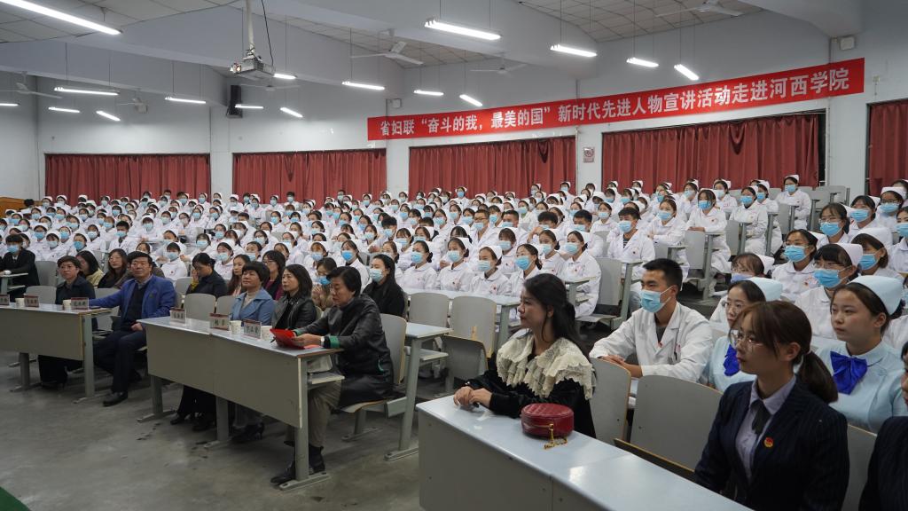 10月12日,williamhill英国威廉希尔邀请甘肃省妇女联合会,举办了“奋斗的我,最美的国”新时代先进人物进校园宣讲活动,拉开了williamhill英国威廉希尔首届“青春导航、职场筑梦”论坛活动序幕。省妇联宣传部副部长刘霏,张掖市妇联党组成员、副主席宋海英,护理公司党政负责人、辅导员、班主任及2020级新生约400名师生参加了宣讲会。护理公司党委委员、副经理卞正霞主持宣讲会。