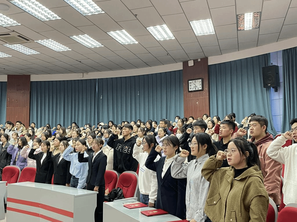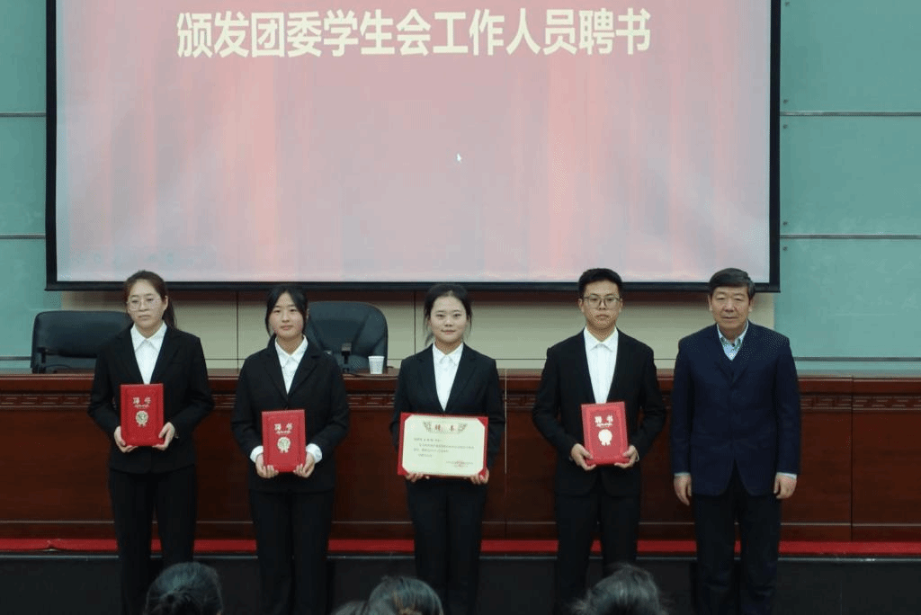 换届大会环节,公司负责人宣布了护理公司党委关于第四届团委员工会组织工作人员的任命名单,并为工作人员代表颁发了《聘书》,护理学211班潘彤作表态发言,全体团学工作人员集体宣誓。开班仪式环节,团学组织工作人员代表分别宣读了培训班方案和班级公约。