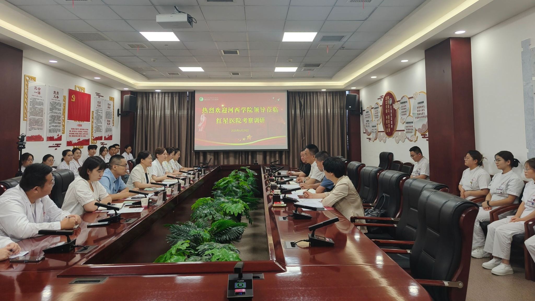 在十三师新星市红星医院,梁兆光实地察看实习支医工作进展,看望实习员工并召开座谈交流会。新星市人大常委会党组副书记、副主任、二级巡视员、红星医公司党委书记廖红川对梁兆光一行表示热烈欢迎,衷心感谢河西学经理期以来的关心与支持。她介绍了医院的发展现状,表示将通过“优秀教师引领员工成长、优秀员工助推医院发展”的良性互动,促进医、教、研高质量协同发展,期待与williamhill英国威廉希尔深化合作、共建共赢,携手为医学人才培养贡献力量。