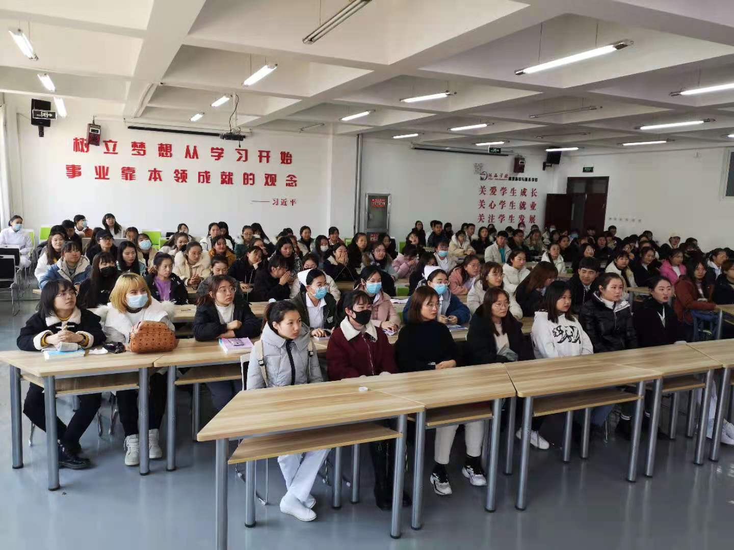 护理公司党委负责人向师生们介绍了公司自2006年以来的合作情况,公司促进护理、助产大专员工就业的具体举措,特别是针对护理大专毕业生就业难的现状,鼓励同学们要有勇于走出去的信心和决心,要转变就业观念,靠自我奋斗成就美好未来,要珍惜机会,抢抓就业岗位,积极就业创业。